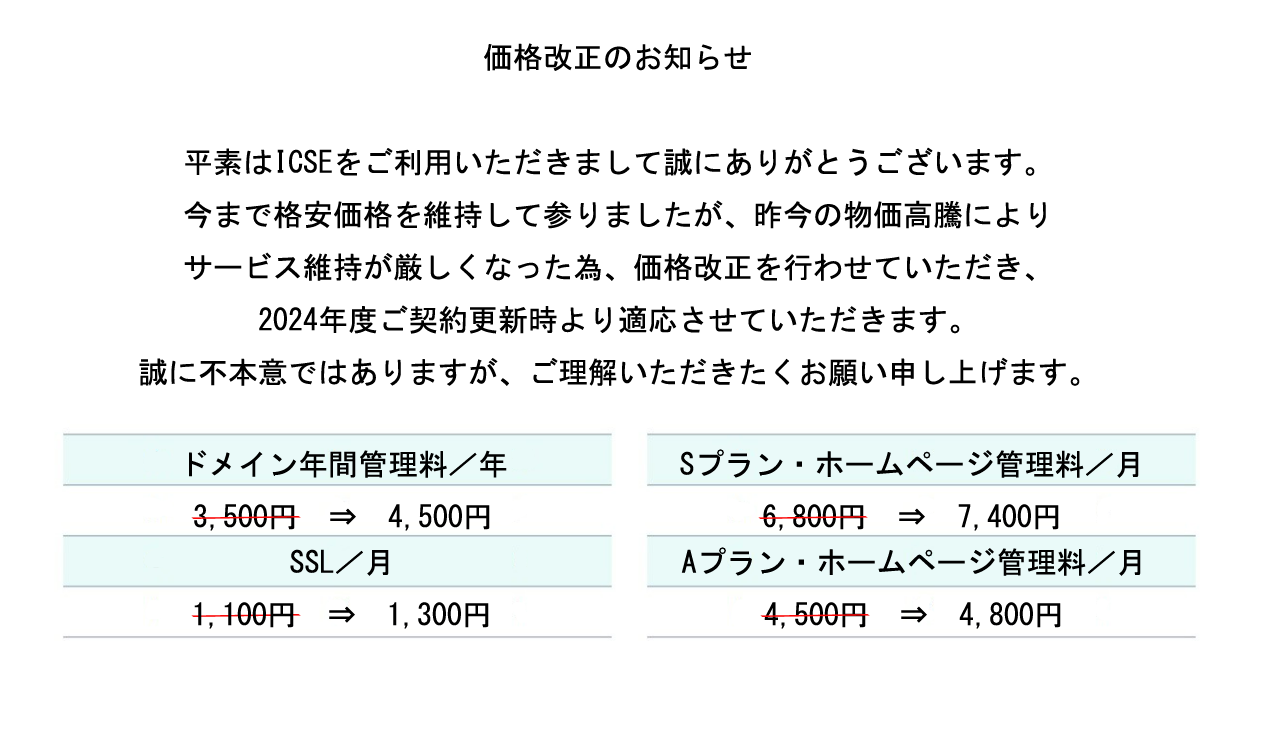 価格改正について >>>
